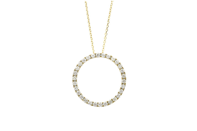 Total diamond weight: 0.115cts. Pendant: £475, 9ct yellow gold. Chain: £200, 9ct gold, 16"-18".
