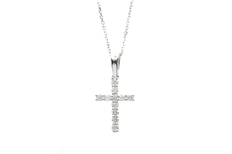 Total diamond weight: 0.32cts. Pendant: £1300, 18ct white gold. Chain: £220, 9ct white gold, 20".