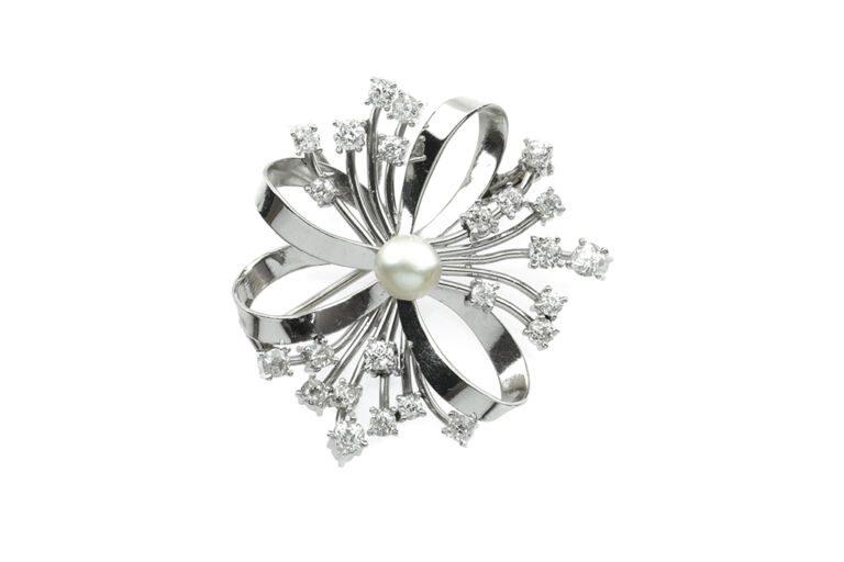 Total diamond weight approximately 2.03cts. One Natural pearl. Mid 20th Century.
