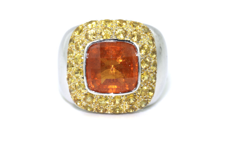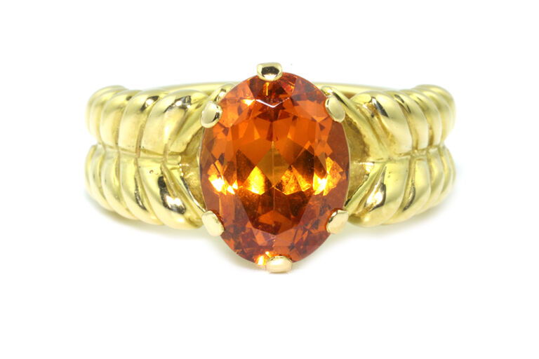 Size U. Spinel weight approximately 1.55cts. Total diamond weight approximately 0.25cts. 18k yellow gold.