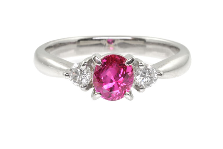 Natural untreated ruby weight: 0.79cts. Total diamond weight: 0.17cts. Ruby from Sri Lanka.