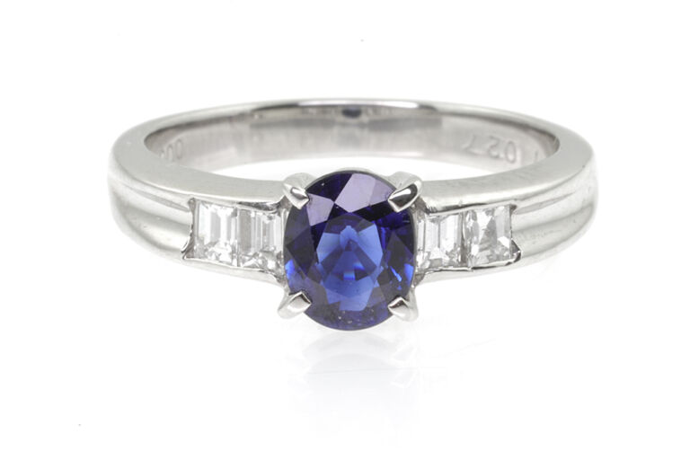 Blue sapphire weight: 0.77cts. Total diamond weight: 0.27cts.