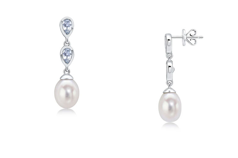 Total aquamarine weight: 0.97cts. Total diamond weight: 0.18cts. 9ct white gold. Post & scroll ear fittings.