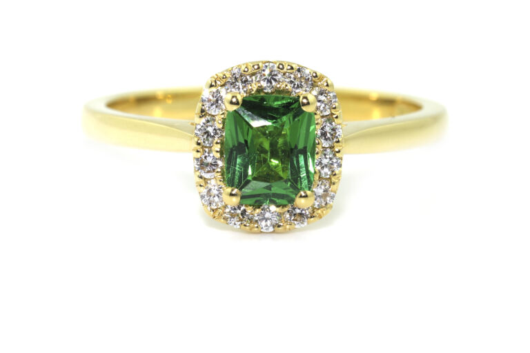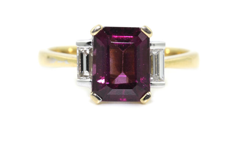 Total garnet weight: 0.50cts. Total diamond weight: 0.18cts. 18ct yellow gold.