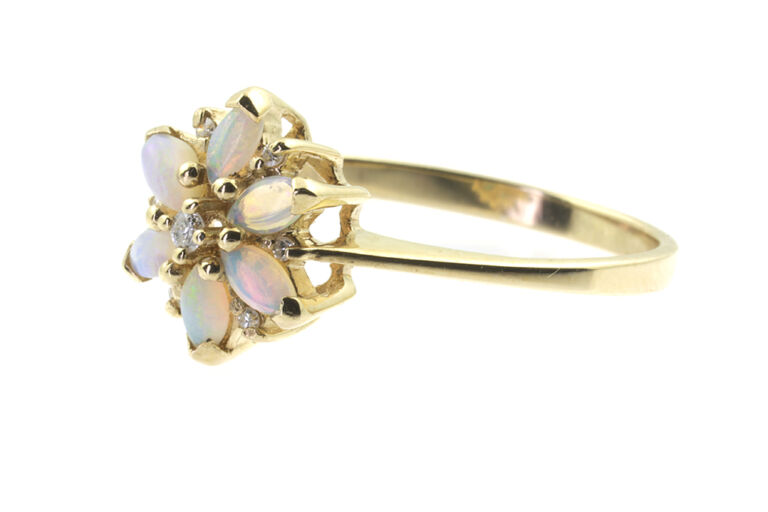 3 Opals. 4 diamonds. 18ct yellow gold. Birmingham hallmark: 1916.