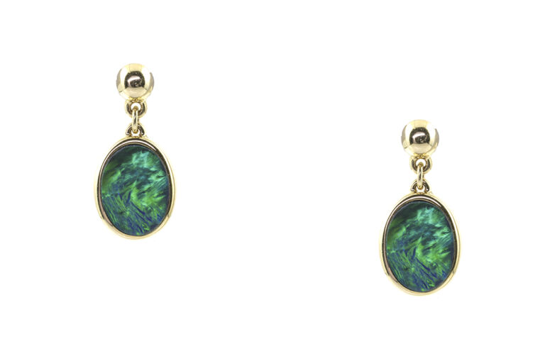 Rub over settings. 9ct yellow gold. Post & scroll ear fittings.