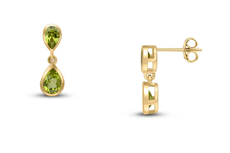 Total peridot weight: 1.80cts. 9ct yellow gold. Post & scroll ear fittings.