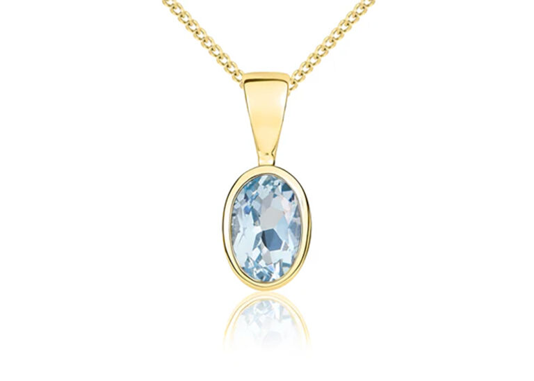 Octagonal step-cut aquamarine: 1.55cts. Pendant: £420, 9ct yellow gold. Chain: £260, 9ct yellow gold, 18"-20".